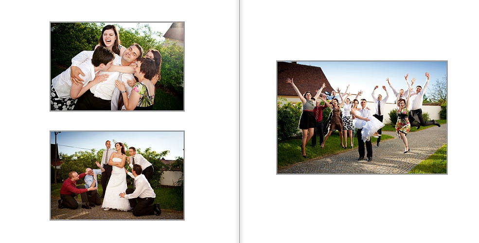 Jako svatební fotograf Vám mohu místo klasického fotoalba vyrobit svatební fotoknihu. Jde o knihu složenou z vašeho výběru fotografií, tištěnou na fotopapír (fotografická kvalita, matový papír) a opatřenou kvalitní vazbou a decentní doplňkovou grafikou. Fotokniha se vyrábí v rozměrech 30x30 cm nebo 20x20 cm.